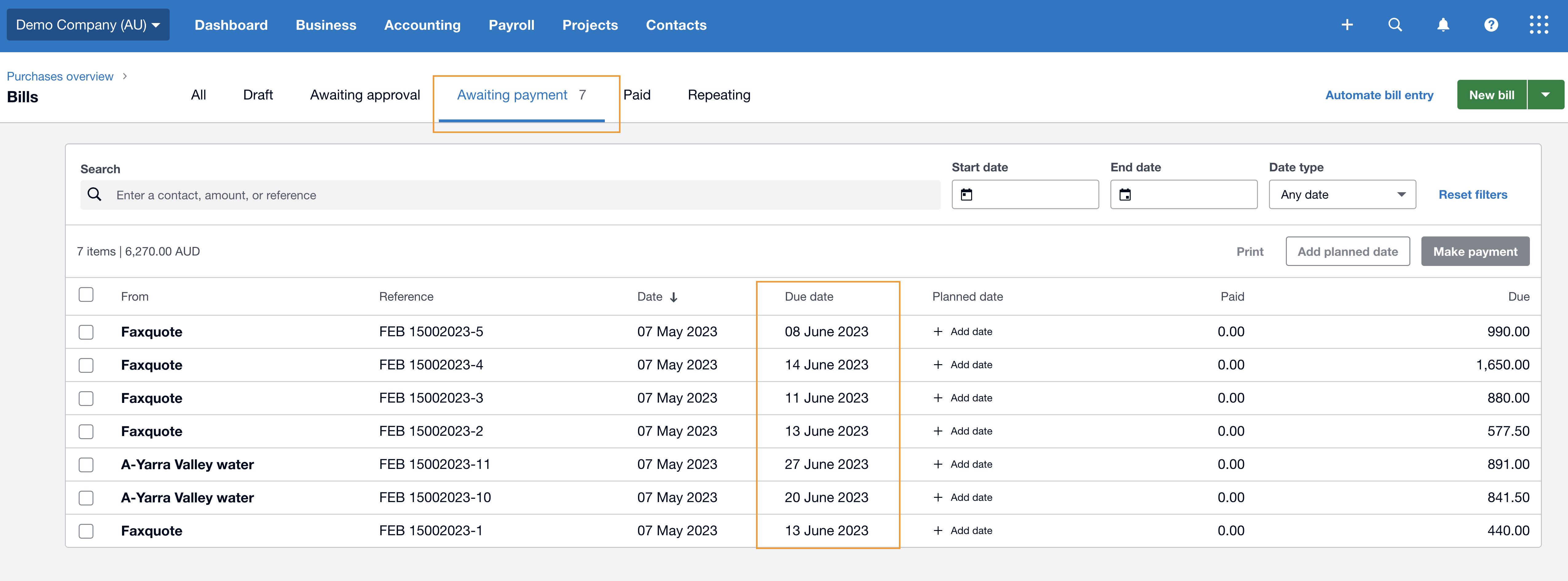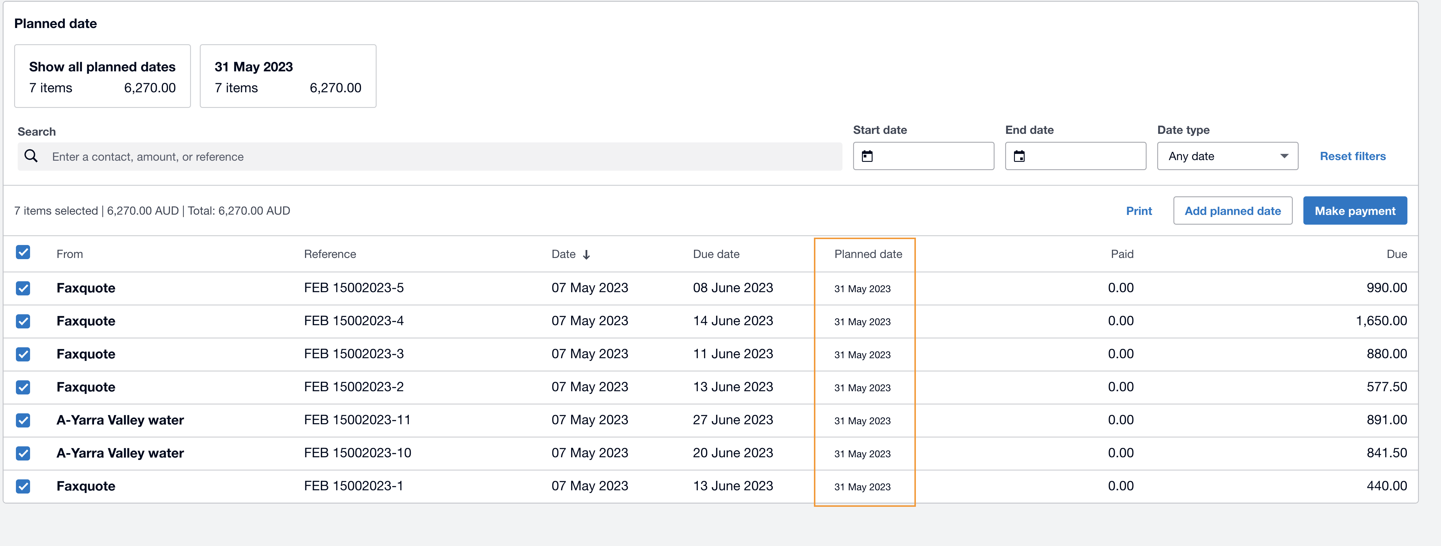 - Can modify the payment date of the bill by changing the Planned date in Xero